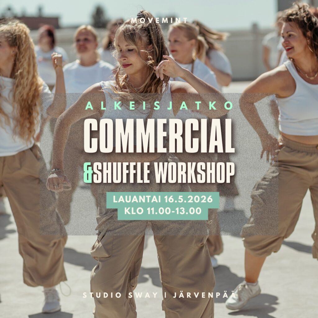 Movemint tarjoaa tanssikursseja, DROP-IN -tanssitunteja sekä ryhmäliikuntaa kaiken ikäisille liikkujille Järvenpäässä ja Sipoossa. Drop-in -viikkotunnit pyörivät Sipoon toimipisteessä Pohjois-Paippisissa 10min ajomatkan päässä Järvenpäästä. Järvenpään studiolla puolestaan järjestämme kaikki kurssit ja workshopit. Kurkkaa kevään 2026 kurssit ja workshopit. Ilmoittaudu heti, jotta varmistat paikkasi!